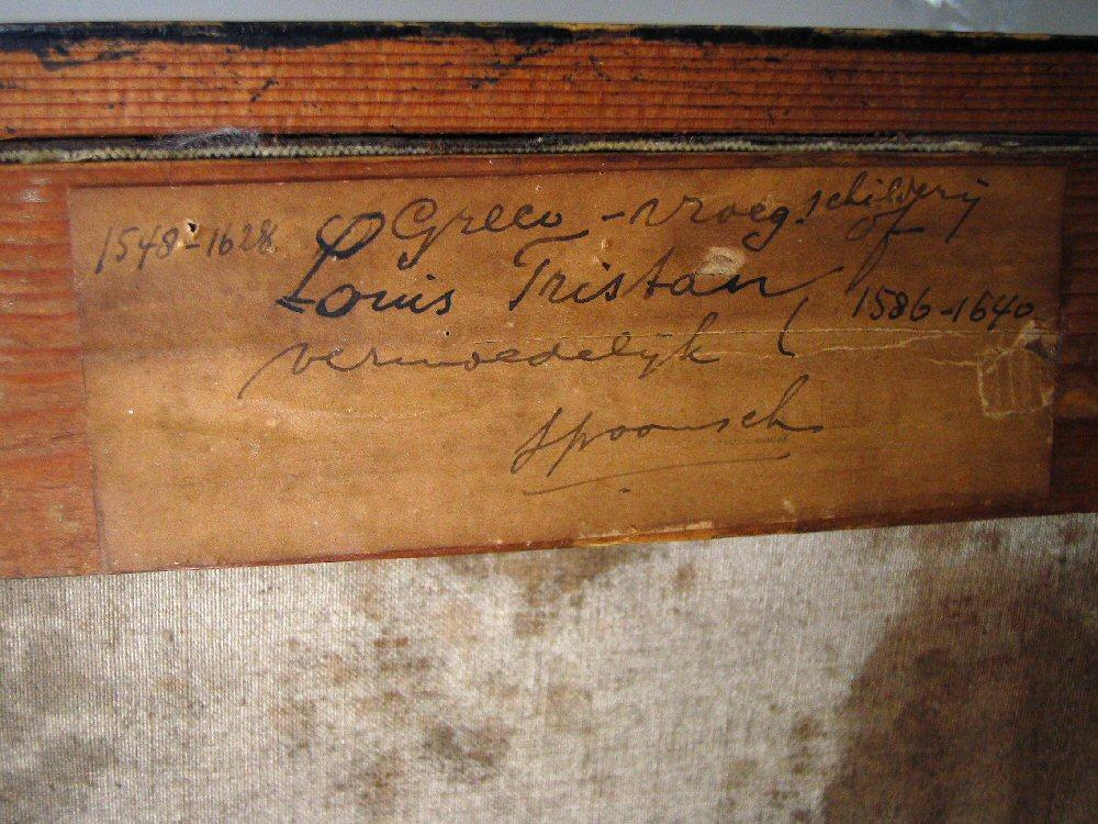 Oil painting on canvas, unsigned, after Luis Tristan, 39.5" x 29.25", "San Andreas".