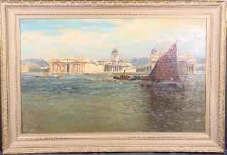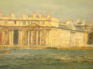 Oil on board signed W.H. Bartlett, dated 1910, 17" x 27", "Greenwich Hospital and the Thames".
