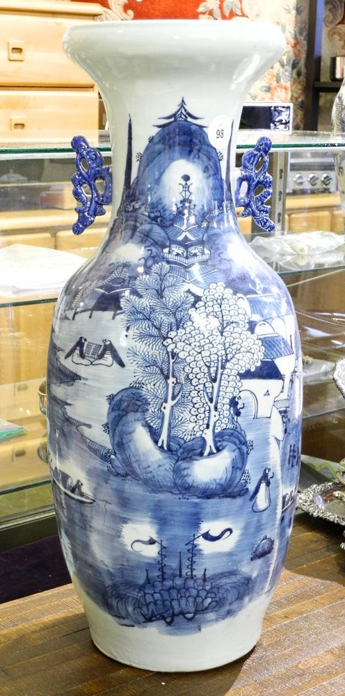 LOT 98 Chinese blue & white porcelain vase, badly cracked, 22 1/2" high. Estimate: $50 - $100 Auction Date: Tuesday, June 29 2021 at 6:00 PM