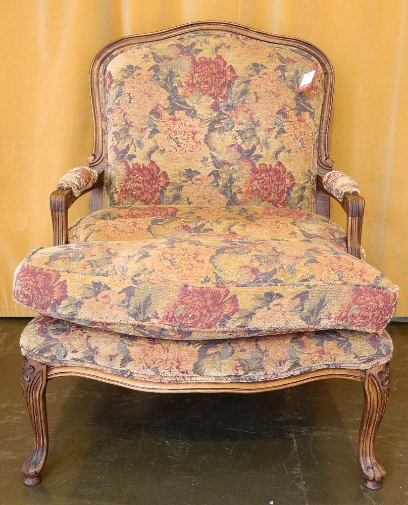 LOT 6 Louis XV Fruitwood Fauteuil with Rose Upholstery. Estimate: $100 - $200 Sold For: $50 Auction Date: Tuesday, June 29 2021 at 6:00 PM