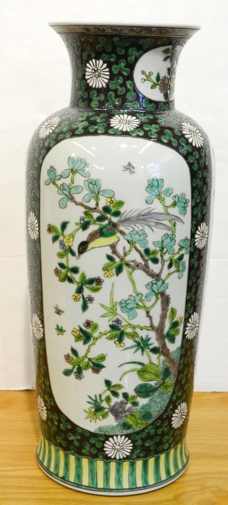 Chinese Famille Verte Porcelain Vase, Kangxi Mark, 17" high.