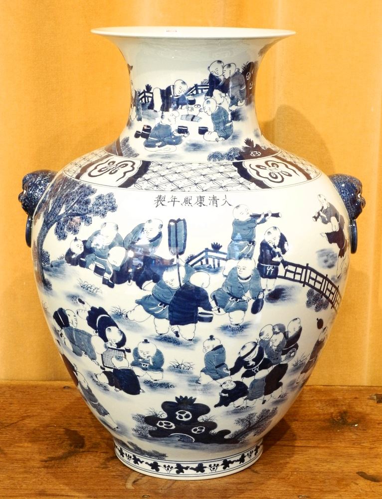 LOT 16 Chinese blue & white porcelain "Boys" vase, 20th Century, Kangxi mark, 20 1/4" high. Estimate: $100 - $200 Sold For: $90 Auction Date: Tuesday, June 29 2021 at 6:00 PM