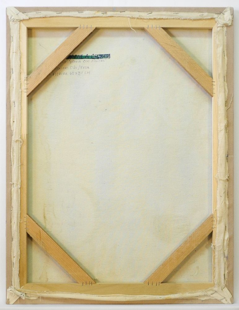 LOT 139 Oil on Canvas Signed Cruzata, 29 1/2" x 15 1/2", "Utopia Con Frutas". Estimate: $50 - $70 Auction Date: Tuesday, June 29 2021 at 6:00 PM