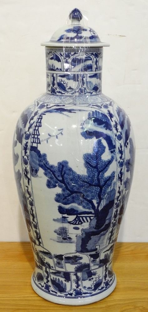 LOT 275 Chinese Blue & White Chinese Porcelain Covered Baluster Vase, 20" high. Estimate: $50 - $60 Sold For: $60 Auction Date: Tuesday, June 29 2021 at 6:00 PM