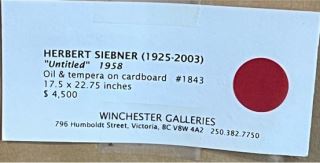 LOT 277 Oil & Tempera signed Siebner '58, 17 x 22 1/2", "Untitled". Estimate: $2,000 - $3,000 Sold For: $3,250 Auction Date: Tuesday, February 24 2026 at 4:00 PM