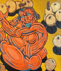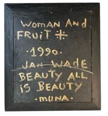 LOT 103 Acrylic signed Jan Wade 1990 Verso, 29 1/4 x 25", "Woman & Fruit". Estimate: $400 - $600 Sold For: $400 Auction Date: Tuesday, February 24 2026 at 4:00 PM
