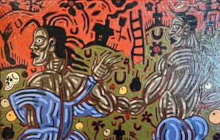 LOT 192 Acrylic signed Jan Wade 1990 Verso, 18 3/4 x 29", "Following Star Signs" Estimate: $400 - $600 Sold For: $475 Auction Date: Tuesday, February 24 2026 at 4:00 PM
