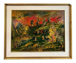 LOT 72 Oil on Board signed H.H. Elliotte, 16 3/4 x 21 3/4", "Remembrance of War". Estimate: $100 - $200 Sold For: $225 Auction Date: Tuesday, February 24 2026 at 4:00 PM
