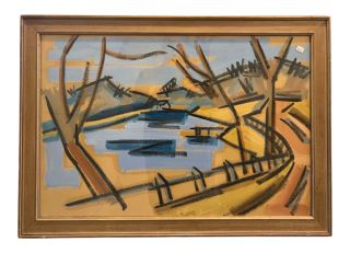 LOT 155 Oil Painting signed James Edward Davis Nov 30 1939, 19 1/2 x 29", "Cabin". Estimate: $100 - $200 Sold For: $400 Auction Date: Tuesday, February 24 2026 at 4:00 PM