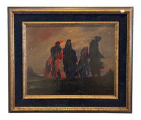LOT 148 Oil Painting signed H.H. Elliott Verso, 16 x 20", "The Refugees". Estimate: $150 - $200 Sold For: $550 Auction Date: Tuesday, February 24 2026 at 4:00 PM