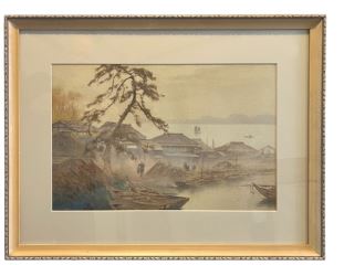 LOT 104 Watercolour signed Tananchi, 12 x 18 1/2", "Village". Estimate: $100 - $150 Auction Date: Tuesday, February 24 2026 at 4:00 PM