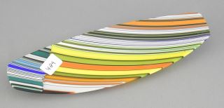 LOT 51 Fused Glass Oblong Dish by Mel Munsen, 7 1/8"L. Estimate: $100 - $150 Sold For: $200 Auction Date: Tuesday, February 24 2026 at 4:00 PM