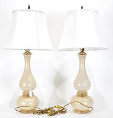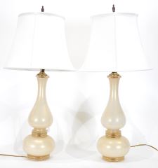 LOT 129 Pair of Barovier & Toso Murano Glass Gold Leaf Table Lamps, TH 29 1/2". Estimate: $200 - $400 Sold For: $500 Auction Date: Tuesday, February 24 2026 at 4:00 PM