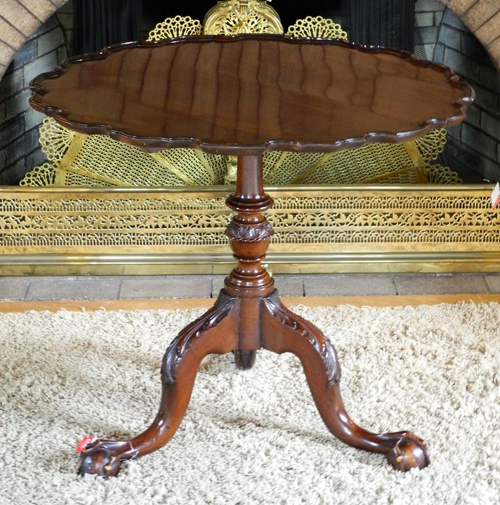 LOT 493 American Chippendale Style Mahogany Tilt Top Table, 29 1/2" diameter. Estimate: $250 - $350 Sold For: $550 Auction Date: Saturday, October 22 2016 lots 1-400 at 1:00 PM, lots 401-733 at 6:00 PM