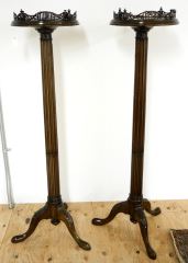 Pair of Mahogany Jardiniere Stands with Gallery Tops and cabriole legs.