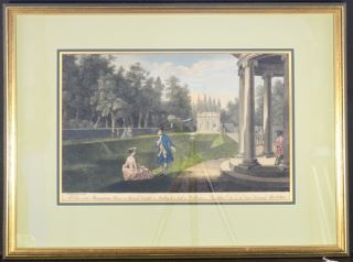 Pair of 18th C. Coloured Engravings, "Scenes of the estate of William Aislabie Esq.".