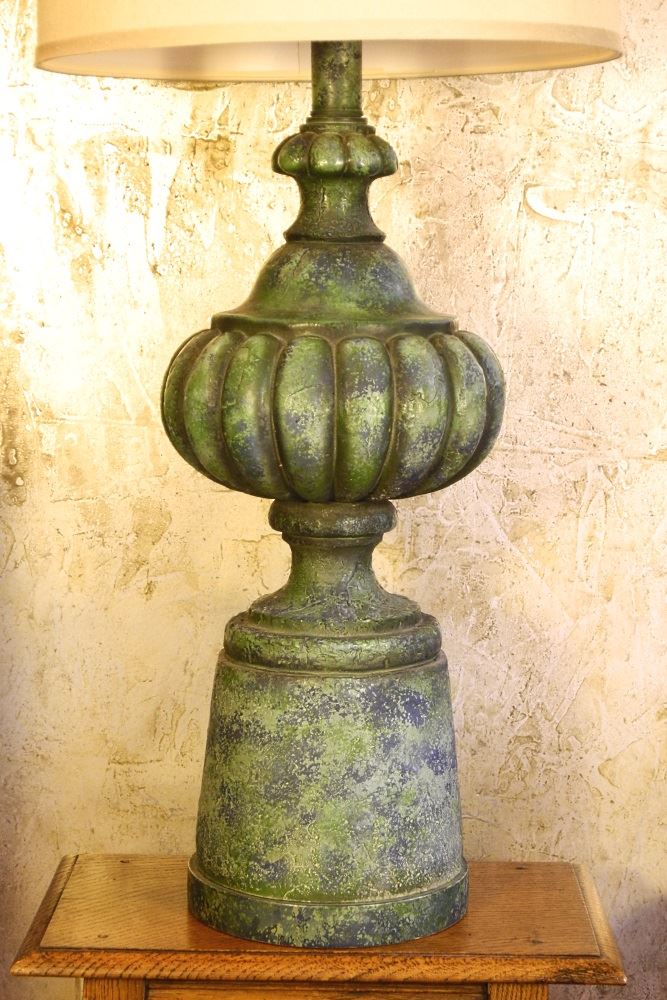 Pair of mid-century turquoise glazed pottery table lamps, 44 1/2" to finial.