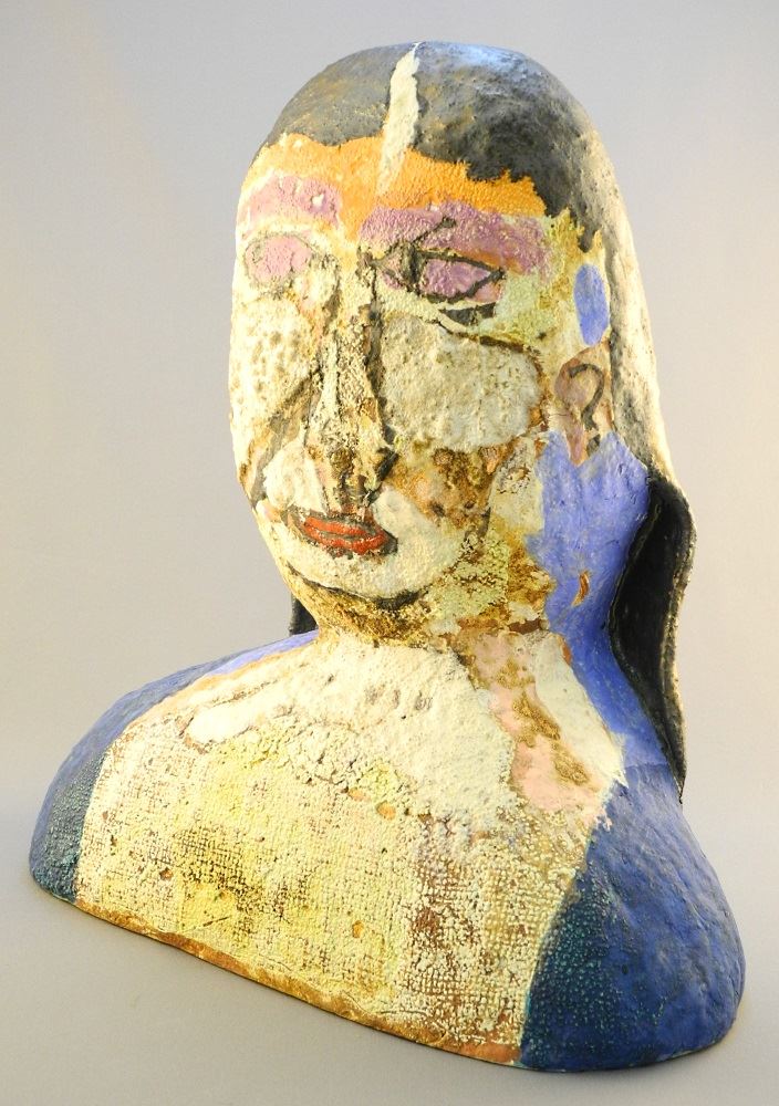 Painted pottery head signed Dexter 2013, 13 1/2".