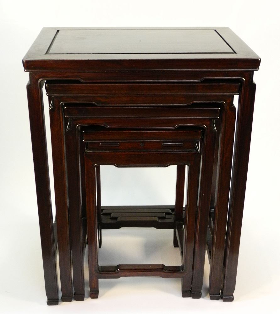LOT 75 Chinese nest of four hardwood tables. Estimate: $250 - $500 Sold For: $300 Auction Date: Tuesday, July 21 2020 at 7:00 PM