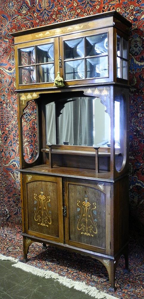 Art Nouveau Etagere, Inlaid & Paint Decorated, 75" high.