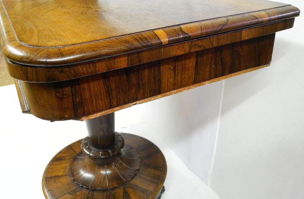 LOT 159 Regency Carved Rosewood Fold Over Card Table, 2'5" x 3'2". Estimate: $150 - $250 Sold For: $240 Auction Date: Tuesday, May 04 2021 at 6:00 PM