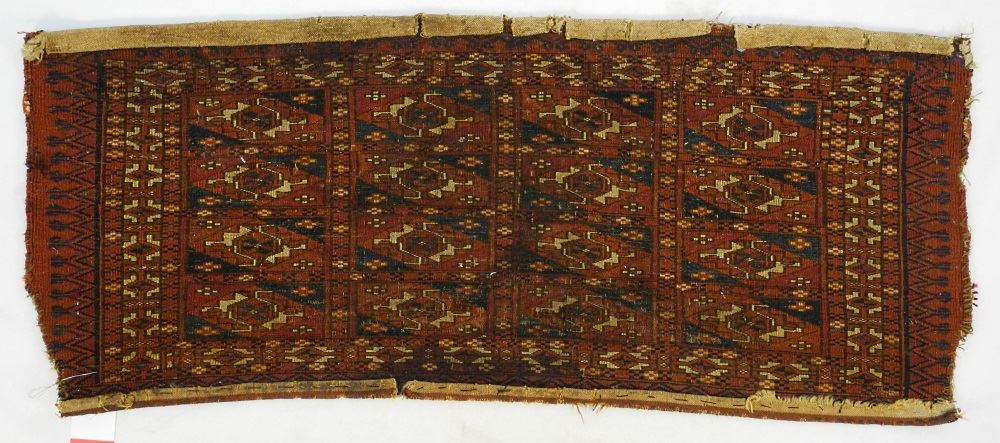 LOT 47 Turkmen Tekke Bag Face, 2'7" x 1'1". Estimate: $350 - $450 Auction Date: Tuesday, May 04 2021 at 6:00 PM