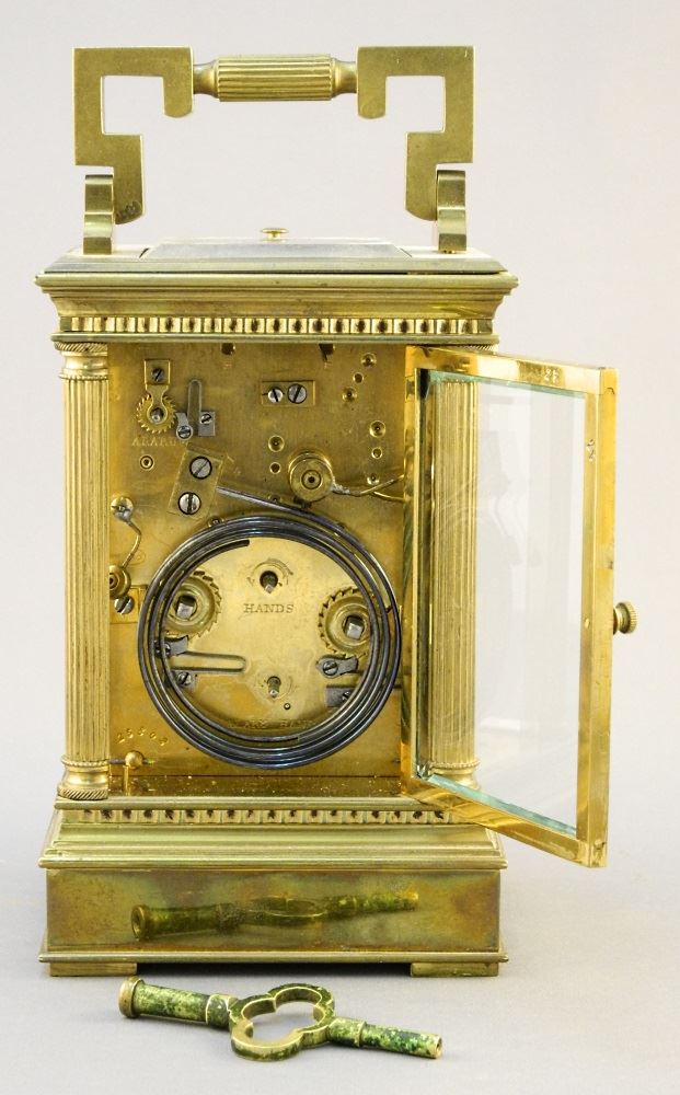 LOT 23 Brass Repeating Carriage Clock with Secondary Dial & Key. Estimate: $300 - $500 Sold For: $675 Auction Date: Tuesday, July 27 2021 at 6:00 PM