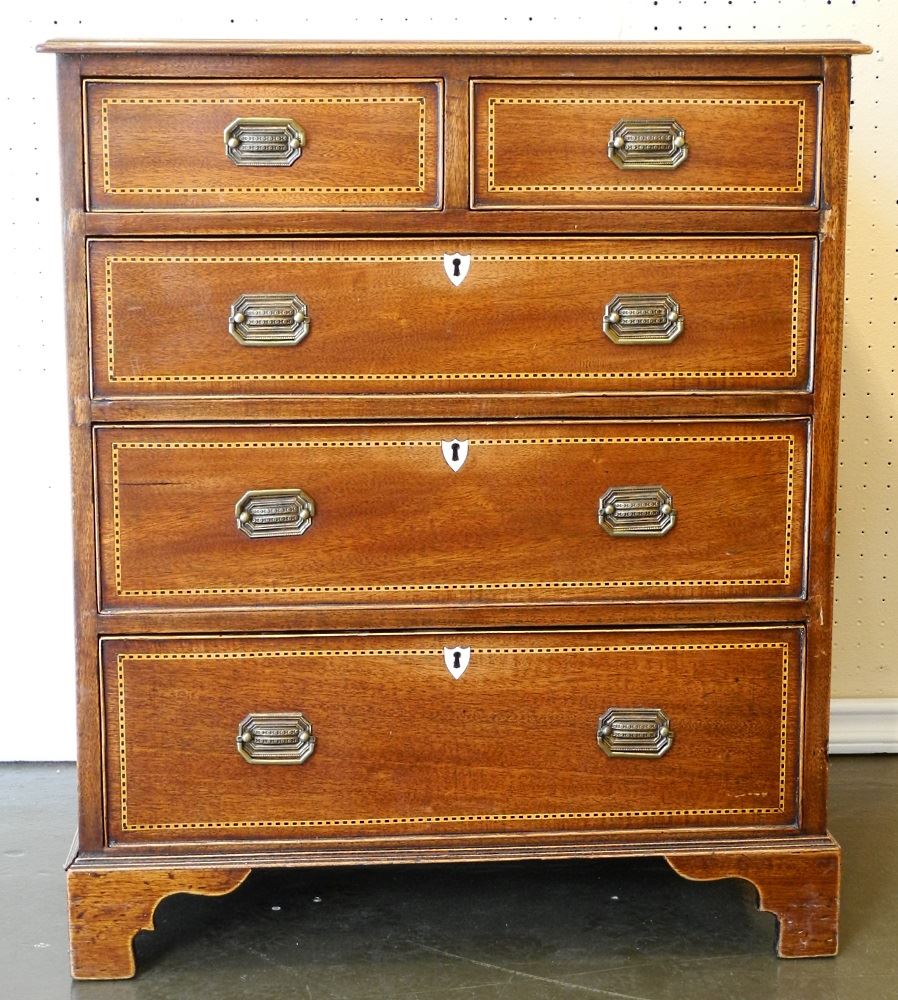 Victorian Mahogany 5 Drawer Chest with Dentilled Inlay, 29 1/4" high, no export.