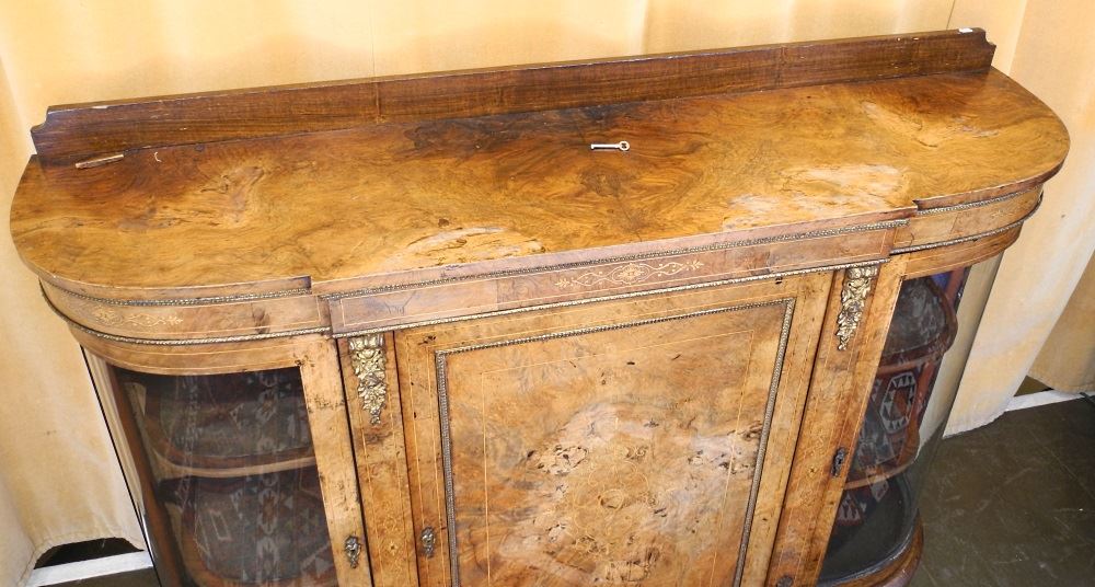 J.R. Teale Victorian Inlaid Walnut Credenza, 58" wide, condition noted.