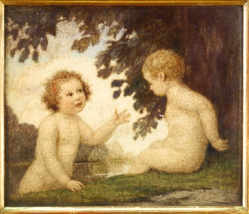 Oil on Board Signed L.V. Zunbusch, 9 5/8" x 11 1/4", "Childhood Study".