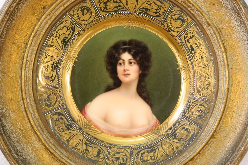 LOT 47 Pair of Royal Vienna Style Portrait Cabinet Plates Framed, 9 1/4" diameter. Estimate: $500 - $600 Sold For: $500 Auction Date: Tuesday, July 27 2021 at 6:00 PM