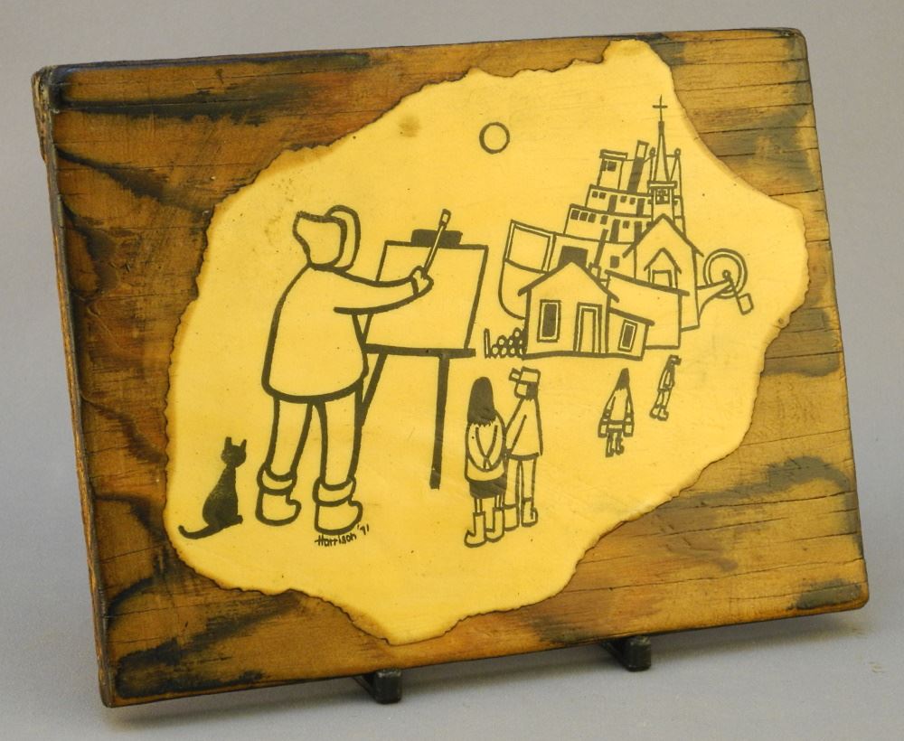LOT 136 Plaque Mounted Print by Ted Harrison 1971, signed verso, 5" x 6 1/2". Estimate: $100 - $200 Sold For: $280 Auction Date: Tuesday, October 19 2021 at 7:00 PM