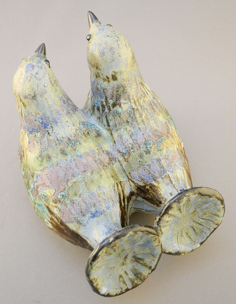 LOT 147 Stoneware Bird Figure having a Iridescent Glaze monogrammed TK (Tom Kakinuma), 8" length. Estimate: $300 - $400 Sold For: $300 Auction Date: Tuesday, October 19 2021 at 7:00 PM