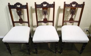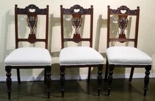 6 19th Century Carved Back Dining Chairs, 38 1/2" high.