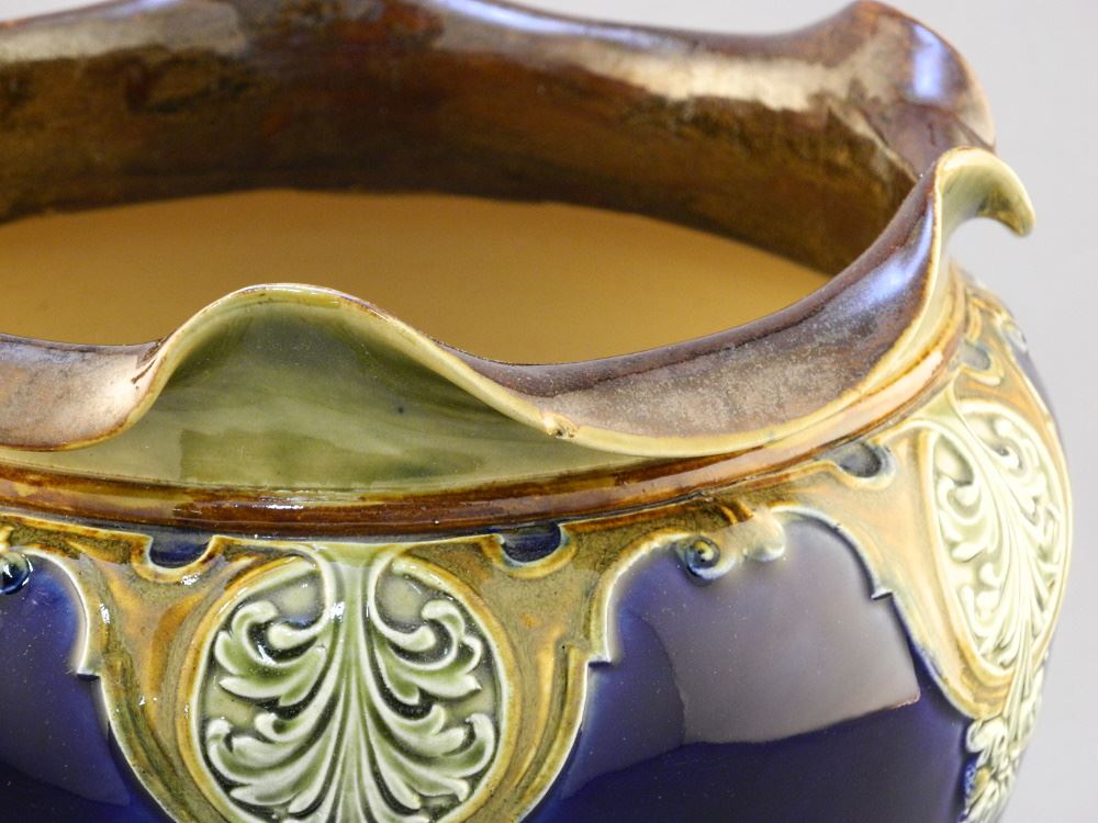 LOT 5 Royal Doulton Jardiniere, 9" diameter, imperfections on rim noted. Estimate: $125 - $175 Sold For: $190 Auction Date: Tuesday, December 14 2021 at 6:00 PM