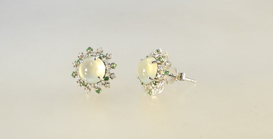 LOT 32 18K White Gold & Natural White Jade Cabochon Convertible Pendant/Ring & Earrings Estimate: $5,000 - $7,000 Auction Date: Tuesday, December 14 2021 at 6:00 PM