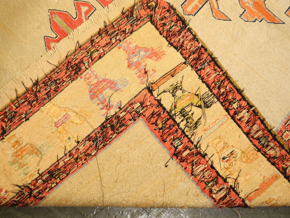 Antique Persian Silk & Wool Carpet, approximately 6'8" x 3'10".