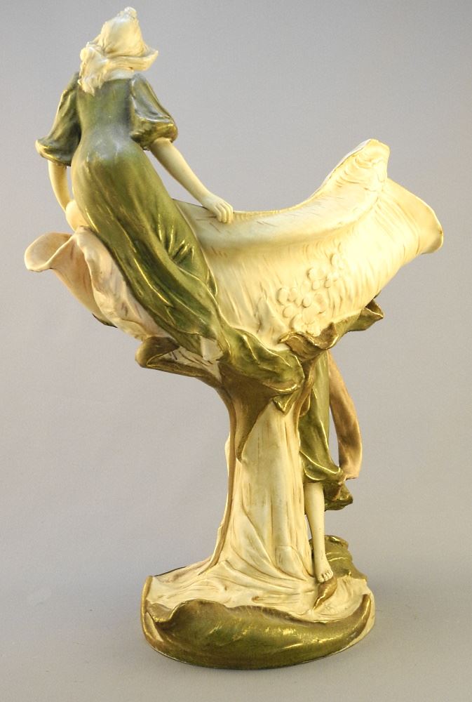 LOT 88 Royal Dux Bohemia Figural Porcelain Table Center, 14 1/4" High, Small Chips Noted. Estimate: $150 - $250 Sold For: $260 Auction Date: Tuesday, February 15 2022 at 6:00 PM