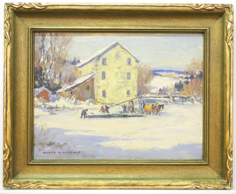 LOT 67 Oil on Board Signed Manly MacDonald, 11 5/8" x 15 5/8", "Making Ice". Estimate: $1,000 - $1,500 Sold For: $3,250 Auction Date: Tuesday, February 15 2022 at 6:00 PM