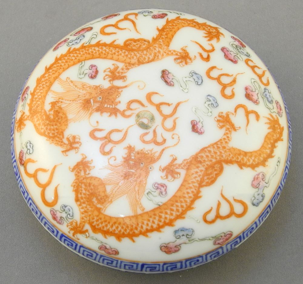 Chinese Famille Rose Paste Box, Chien Lung Mark, 3 1/2" Diameter.