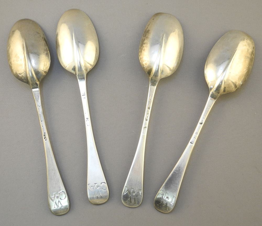 LOT 55 5 Georgian Hallmarked Sterling Hanoverian Rat Tail Spoons, 229 Gram Monogrammed. Estimate: $300 - $400 Sold For: $400 Auction Date: Tuesday, February 15 2022 at 6:00 PM