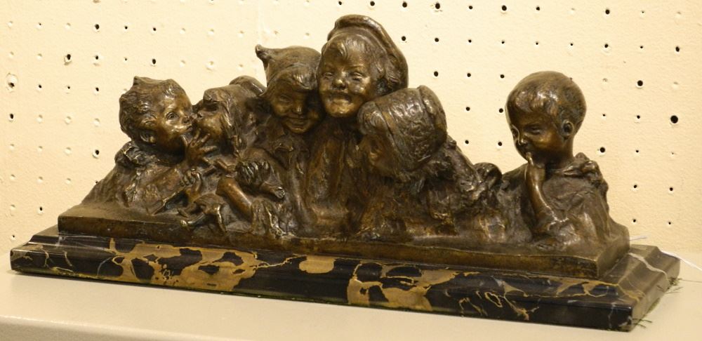Bronze Figure Group Signed Juan Clara, with Serial # & Foundry Mark, 6 3/4" x 15 7/8" x 5 1/4".