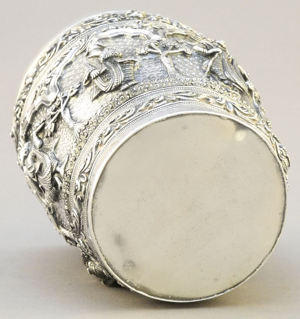 South East Asian Unmarked Silver High Relief Goblet, 4 5/8" High, 308 Grams.