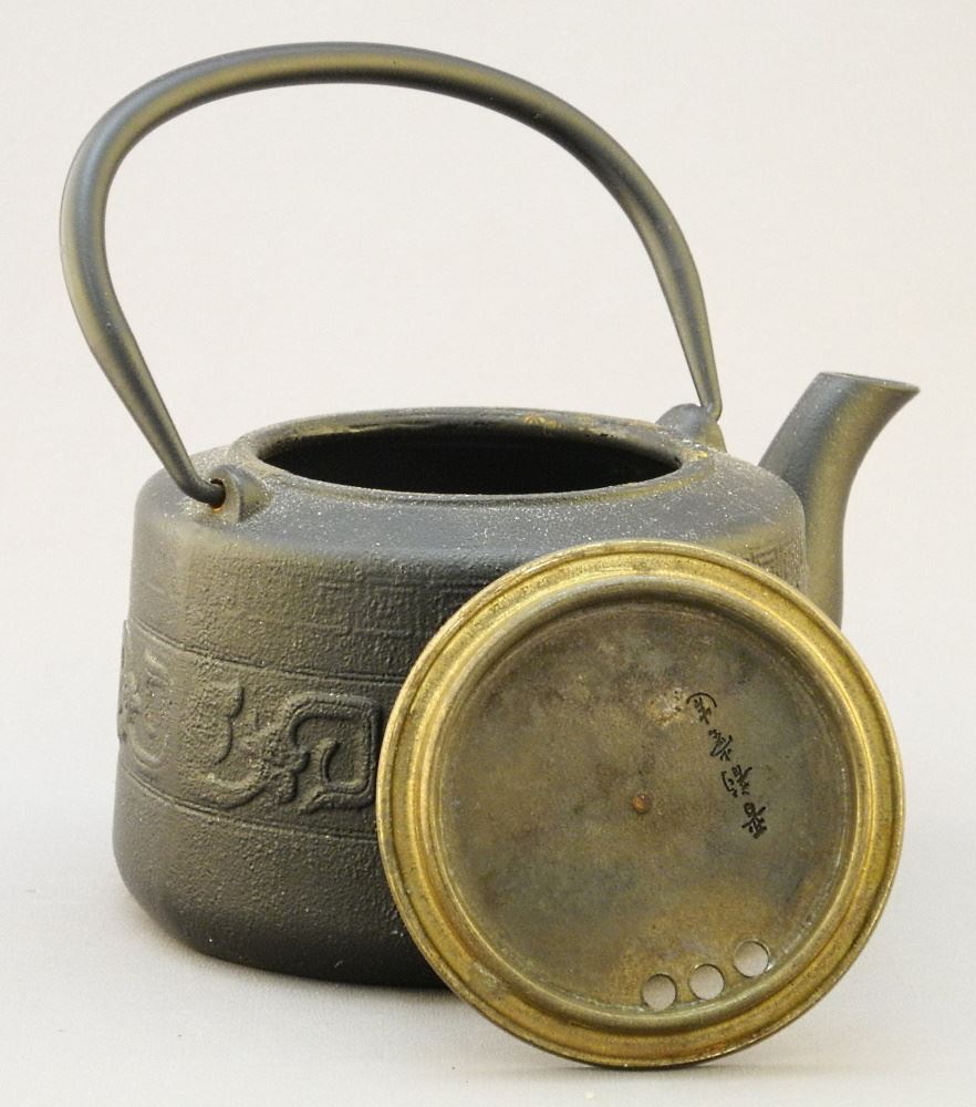 LOT 155 Japanese Cast Iron Tetsubin with Brass Lid (Signed) & Tigers Eye Finial, 4 1/2 x 6 1/2 x 5" Estimate: $100 - $200 Auction Date: Tuesday, October 04 2022 at 6:00 PM