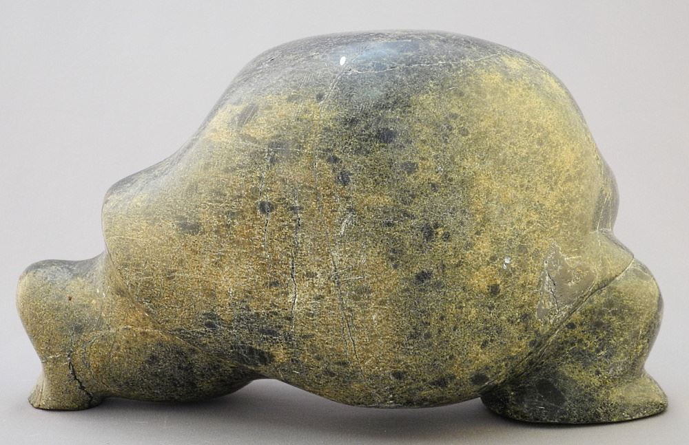 Inuit Stone Carving Signed with Syllabics Nuyaliaq Qimirpik '76, 12" "Hunter" with Marine Ivory