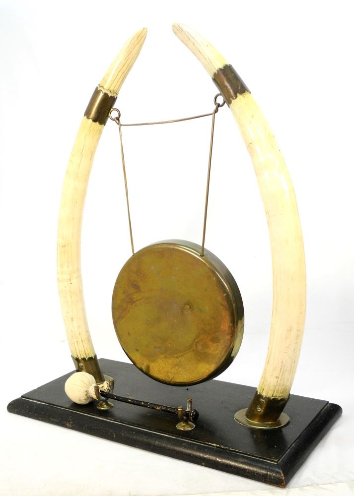 Rhodesian Elephant Tusk Dinner Gong with 1976 Import Papers, Tusk 31 1/4 Whole 32 1/2 x 25 5/8 x 13
