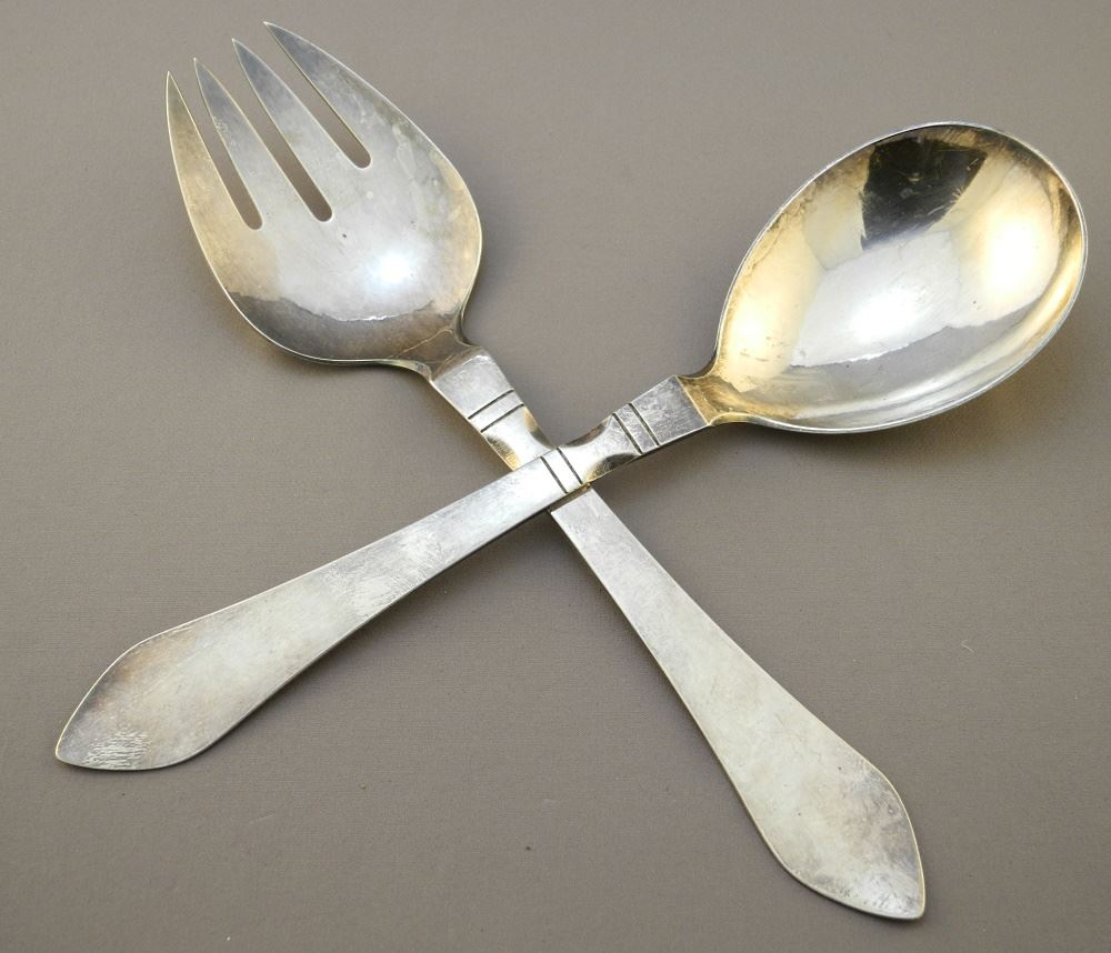 Pair of Georg Jensen Sterling Salad Servers, 7 3/4".
