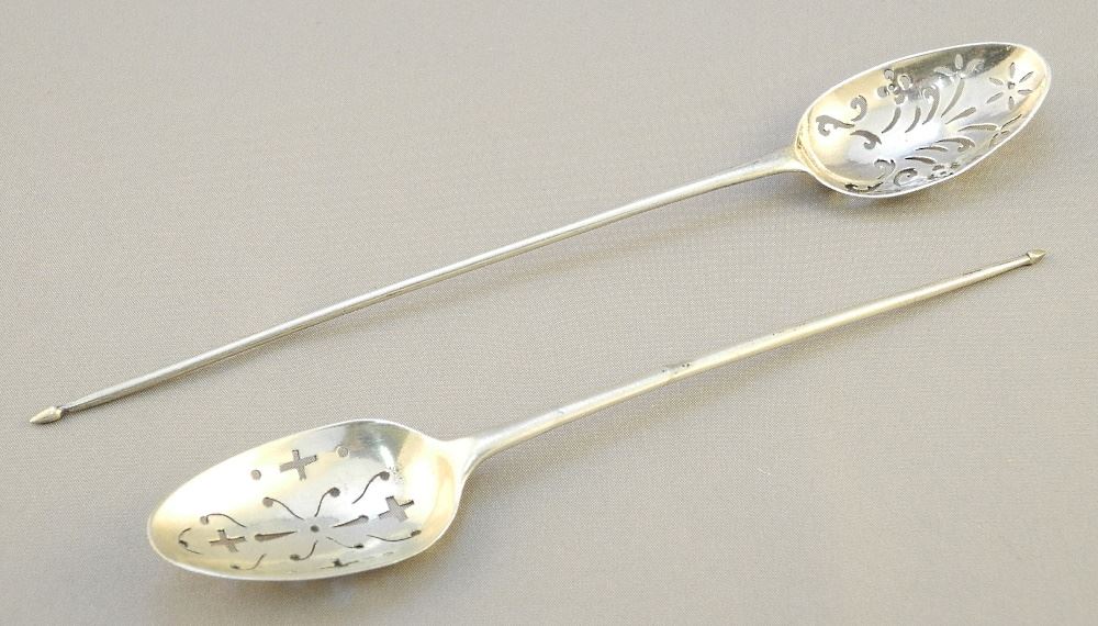 LOT 153 Pair of Silver Mote Spoons, London Circa 1815, 5 3/8" & 6 3/4", 17.22Gr Estimate: $100 - $150 Sold For: $160 Auction Date: Tuesday, October 04 2022 at 6:00 PM