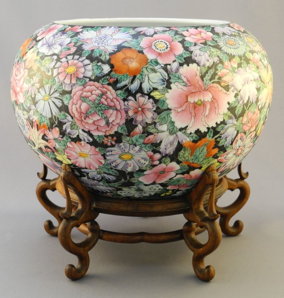 Chinese Porcelain Mille Fleur Bowl (5 7/8" x 9 3/8") with Fitted Stand.