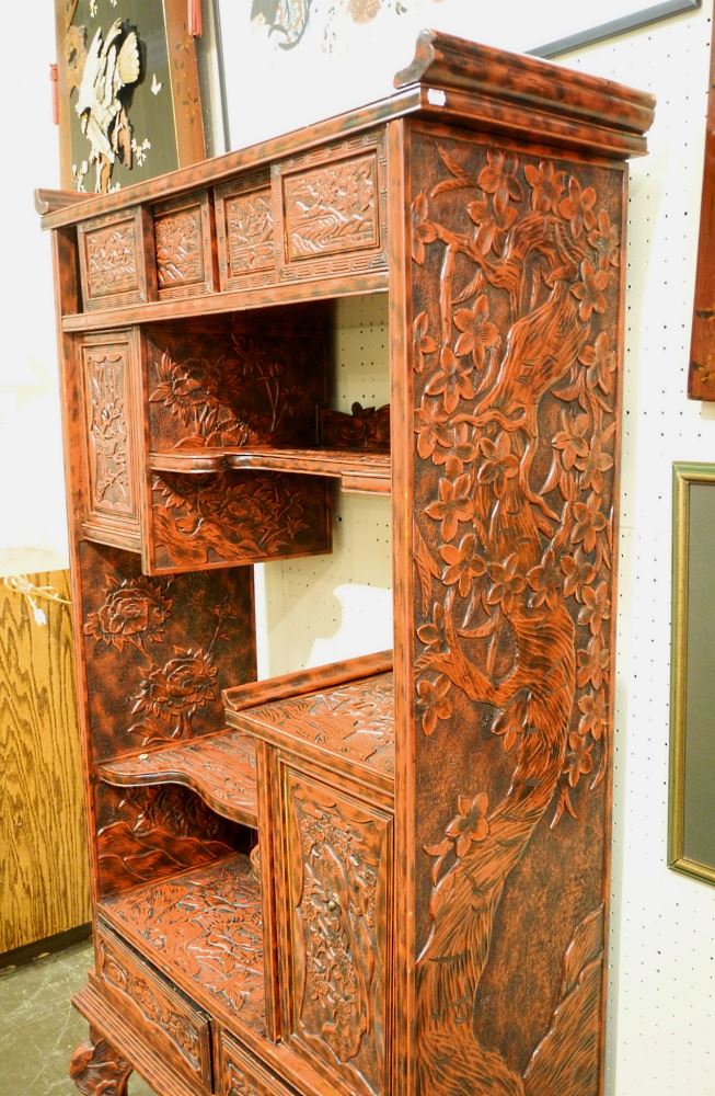 LOT 69 Japanese Carved Scarlet Lacquer Shodhana, 68 1/4" high. Estimate: $500 - $700 Sold For: $400 Auction Date: Tuesday, October 04 2022 at 6:00 PM